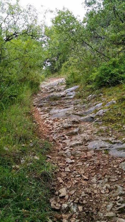 Today’s walk was was grim… there’s no nicer way to put it. The first few kilometres were clearly the local dog walking circuit so we were picking our feet through the dog poo! The path was overgrown and barely 50cm wide in places… pretty hairy when at times there was a shear drop on one side! Most of the path was heavily forested and I felt like I was being bitten everywhere… at one point we both seemed to aquire a pet fly that insisted on travelling with us… I just wanted the walk to end. What a relief to see a road… and what a disappointment to see the path disappear back into the forest. The walk back down was equally dreaful but slippery loose stones added to our enjoyment.