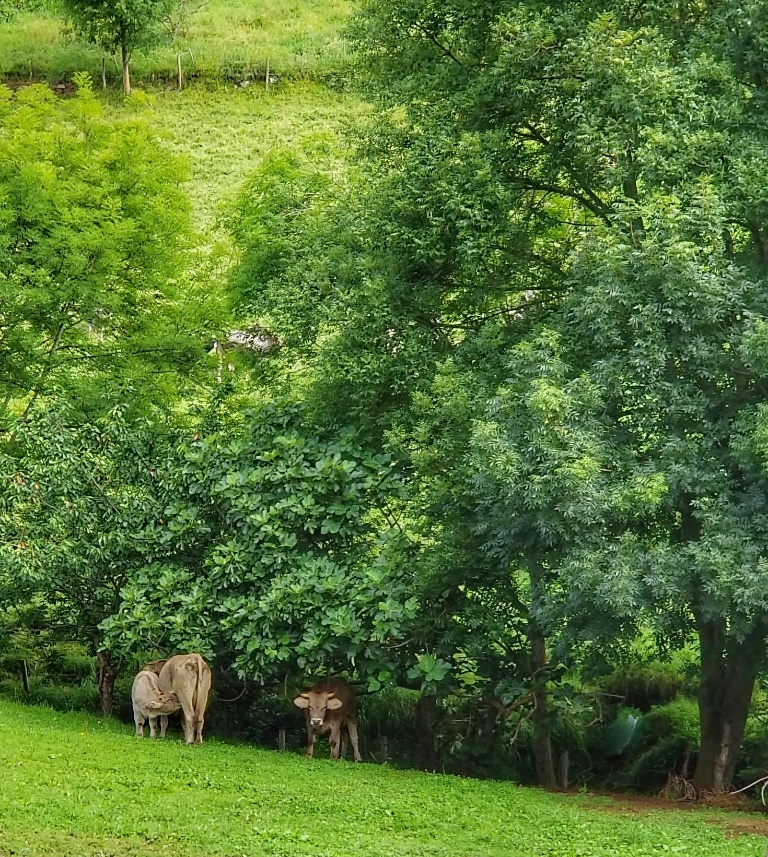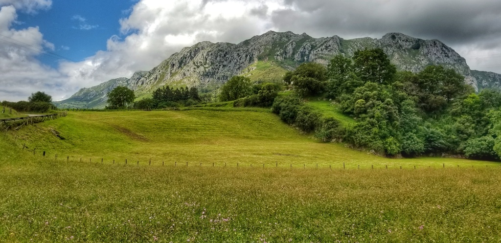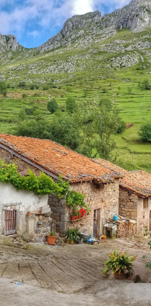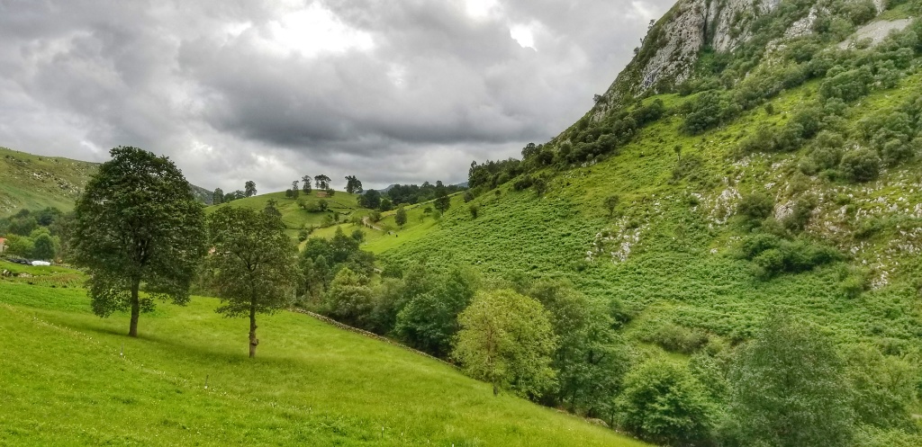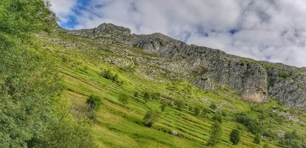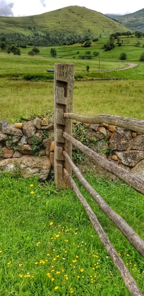 Typical of my morning, just as we got to the steep section google announced that the GPS signal was lost so it was just us and the road… but as there was only one road we assumed we should just keep going. Up and up we drove, switching left and switching right and wishing and hoping that no other car or tractor came from the other direction. The road was steep and narrow and our poor little car barely left second gear. We passed an old lady bent over her stick, strolling up the hill… a few hundred metres further up we saw a chap trying to catch a calf that had escaped his pasture and was stuck on a ledge beside the road; Gerry wondered if the old lady was the support team coming to help. But we’ll never know as we carried on higher and higher until the road opened up into a valley and instead of mountains and rocks we had fields and high pastures.