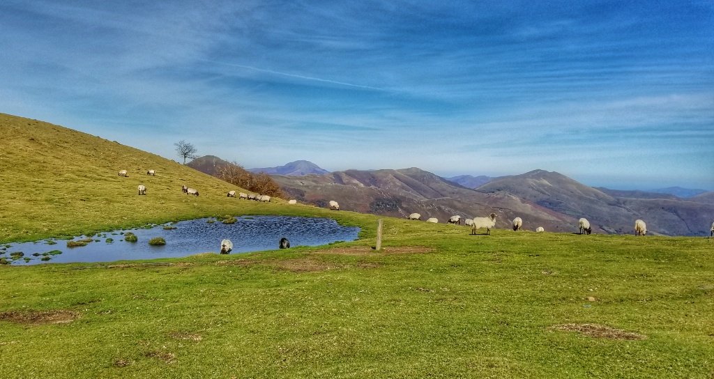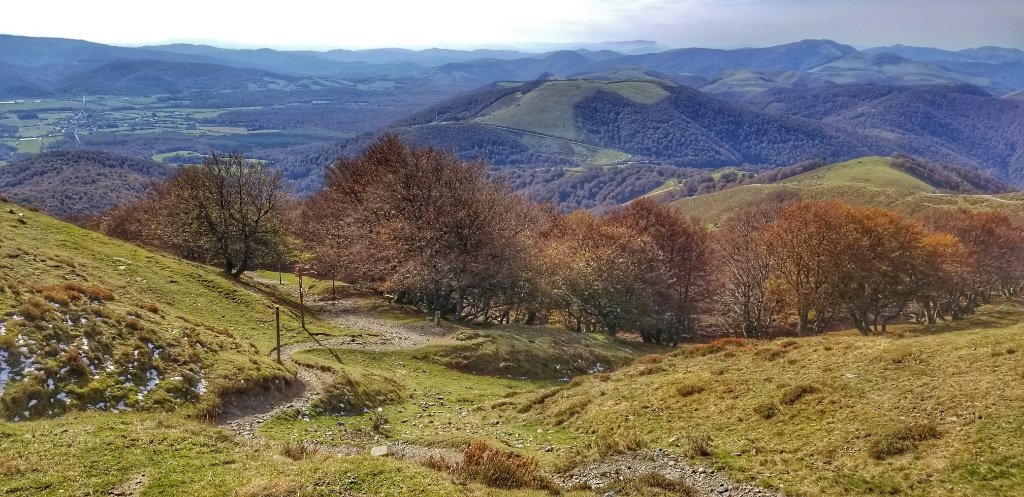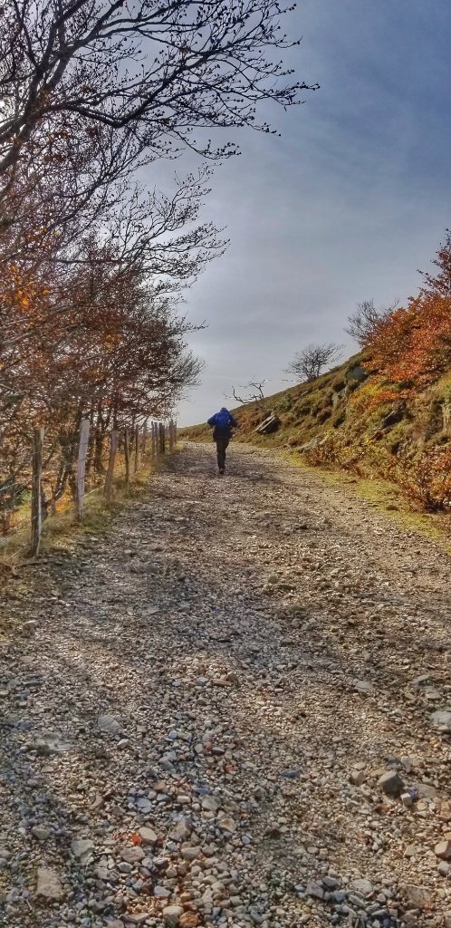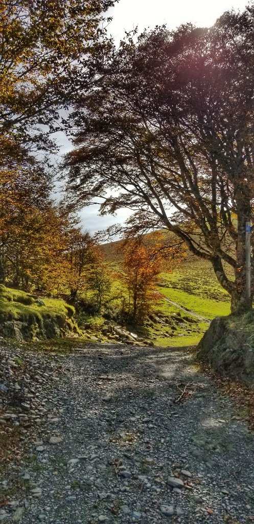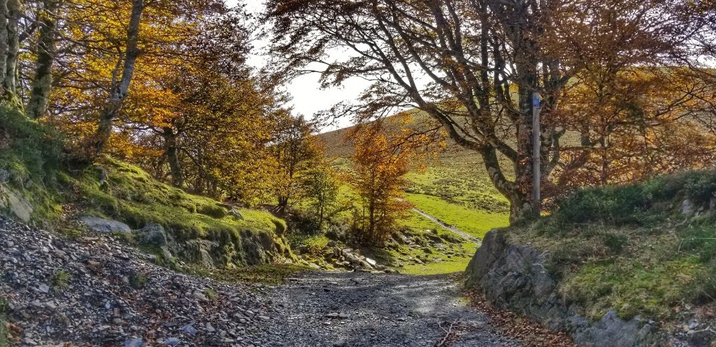 We arrived. Our plan was to walk the ‘road’ way up to the Col de Lepeoder. Whenever I’ve walked from St Jean and Orisson, I’ve always taken the route down through the beech forest to Roncesvalles. It’s very steep and that puts some pilgrims off but I’ve never fancied taking the road option. So today was a new path for me and I would discover that rather than being just a safe alternative, this route is actually really beautiful and pretty steep too!