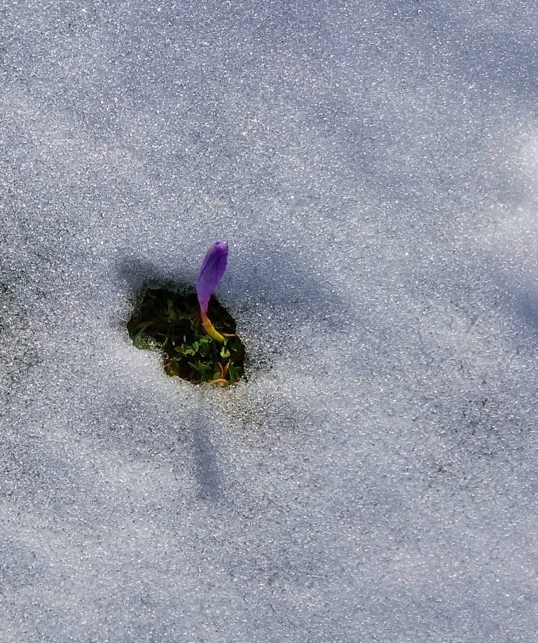 Onwards an onwards looking at the mountains and the kilometres fell away easily and in no time we were at the hut. I took a photo here in 2015 and my friend Maggie entered it into a competition in Australia. It won and was published as part of a travel company calendar. I tried to recreate that photo today but the weather wasn’t as extreme… then we had grey skies and snow all around. Today it looked glorious but not quite as dramatic.