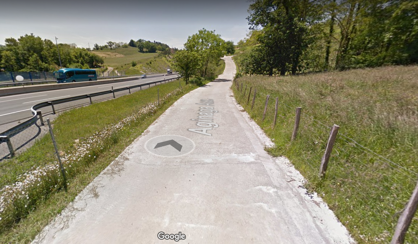 We followed the GPS out of San Sebastian and headed off in what we thought was the direction of the motorway. But alas no. Our GPS lead us along the narrowest of narrow roads where our van just about managed to sit on the tarmac so goodness only know what would have happened if we met something coming the other way. Onwards we travelled along this ridiculously small road until we could see the autoroute! Phew! What a relief. Except there was no relief. We travelled along our tiny road alongside the motorway for a short distance before heading back inland. (images curtesy of google streetview).