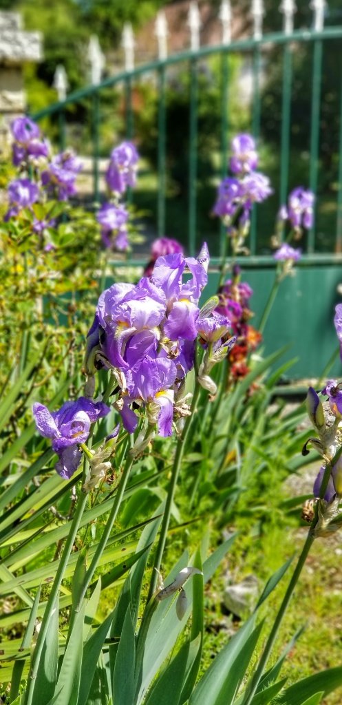 We ooh and aahed at the flowers and the river, we admired the lovely houses that lined the path and their beautifully clipped gardens and as we crossed little bridges Gerry checked for signs of fish. Before long it was time to take off a few layers, first the long sleeves and a little later, Gerry’s zip-off legs were dispatched too.