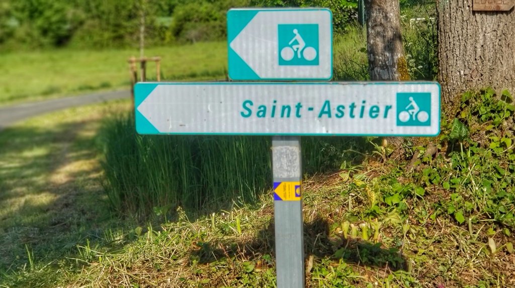 There are a few options for walking the Vezeley Camino from Perigueux. You can walk along the Voie Verte (the green way, a footpath that follows the River Isle) towards Mussidan, and then follow the arrows to Sainte Foy le Grande and onwards. You can follow a camino variation towards Bergerac and onwards towards St Jean. Or you can walk part of the camino to Chancelade and then join the Voie Verte towards St Astier. From St Astier you can also choose to divert towards Bergerac on a GR (via Villamblard) or just carry on the camino to Mussidan. It’s confusing, and I’ve never really understood why there are so many choices but I’m not complaining, it means there are many local camino trails for me to discover.