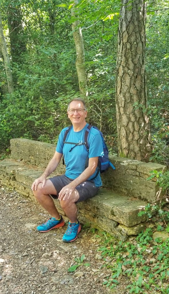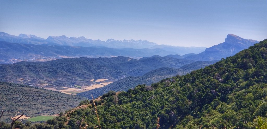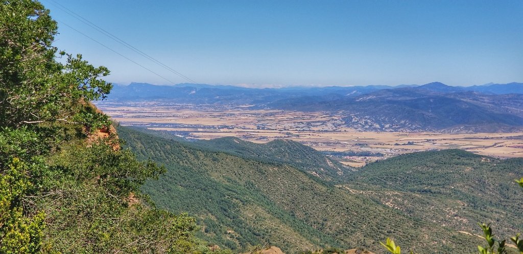 After our visit we decided to take the path higher up the hill to the Mirador. The sign said an hour and we hoped Gerry’s ankle was up to the trip. In the event it was a fairly easy stroll. Partway up Gerry spotted a bench. We’d skipped breakfast and he was peckish. After complaining the bench was too low he search the rucksack for food and drink. He was out of luck as it had been emptied the night before… no emergency apple, no flask of tea. He was horrified… he blamed me and said one day of walking alone and it all fell apart. I left him on his bench and continued up the hill… I can walk faster than him now so I reached the top first and the views from the top were simply breath taking. It was a clear day and we could easily trace the mountains we’d walked and travelled through over the last week. What a glorious view!