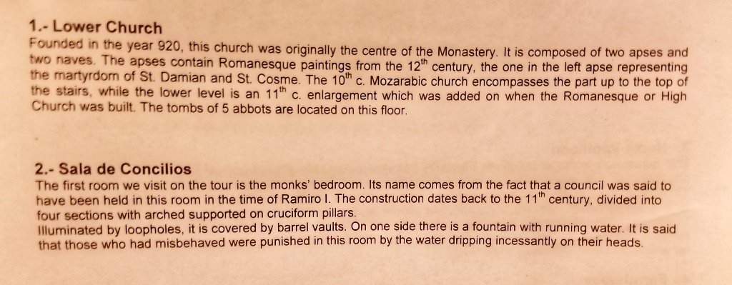 Covered by the huge rock that gives the site its name, work began on the lower church in 920 AD. The building appears perfectly camouflaged within its natural environment. Within the interior is contained a pre Romanesque church, 12th century paintings of San Cosme and San Damián, the designated Pantheon of Nobles , the superior church, consecrated in 1094, and the Gothic chapel of San Victorián, but above all stands out the magnificent Romanesque cloister. The authentic origins of the monastery are lost in the darkness medieval times, it is thought that it started life as a sheltered hermitage which led to the foundation of a small monastic centre devoted to San Juan Bautist in the 10th century, of which some elements survive. This really is a magical place that combines history, culture and nature like no other. Indeed it was hard for us to pull ourselves away but hunger and thirst got the better of us and we headed off in search of lunch.