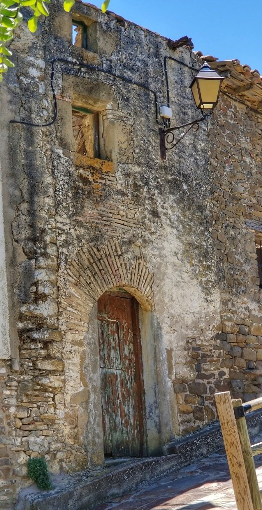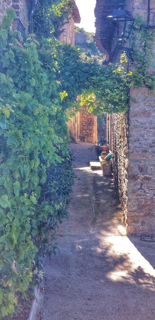 It was very hot and we were pleased to see Arres (pirate voice) ahead. We’d read there was a bar and we both looked forward to a cool drink. We’d also thought there was a church for us to explore but we couldn’t find it… the village was tiny you shouldn’t be able to lose a church! But we did. Gerry pushed hard against a door handle, convinced he’d found the right building, and was trying to get in… only to realise he was trying to get into someone’s house! At least the bar was open. Inside were two old chaps and a lady serving. No-one was wearing a mask and one of the old chaps was coughing a lot! Gerry ordered and I took a seat outside in the shade.