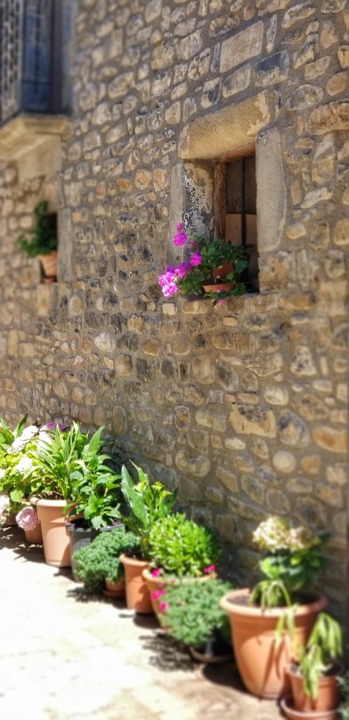 I didn’t want to leave the mountains but it was hot and time was marching on… we returned the car and headed back down the valley and on to Binies. Another beautiful little village with another castle. Binies, unlike Ruesta, was very much lived in and the streets were full of flowers and plants. We wandered around the narrow roads and headed off in the direction of the church and castle. The Castle of Urries is thought to be 12th Century but the village, like so many here has a much older history. The earliest mention of Binies was in 893 but it was thought the village existed before this. The castle is now privately owned and as the sun was hot hot hot we decided that we were ready to return to the cool of our little casa.