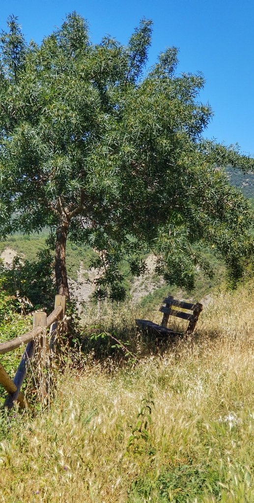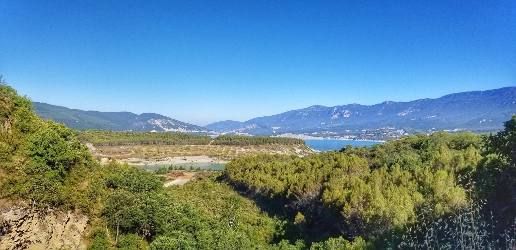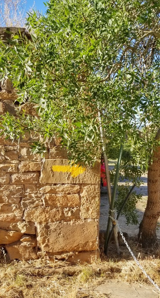 We wandered around the village and it’s surroundings before starting our walk. We even met our first pilgrims! (although they weren’t too chatty so we simply exchanged buen caminos). You leave the village by a bit of a downhill path, which seems to be the remains of an old road. There are large loose stones/cobbles and of course inevitably Gerry stumbled. Nothing major. Not a fall. Not anything really. But what it did was irritate his already sore ankle. We continued for a little while but he was slower and limping so we stopped. Today’s route is solitary. Gronze describes it as: The stage takes place in an environment of melancholic loneliness; At the exit from Ruesta we face a long and monotonous climb, in which we gain 350 meters of unevenness in 6.4 kilometers, with splendid views over the controversial Yesa reservoir. Like yesterday, today there are also two long stretches without provisioning and, furthermore, there are few places to take shelter from the sun.