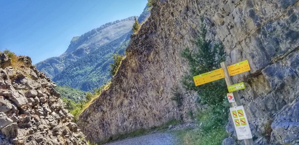 We only planned to walk about 6 or 7 kilometres before returning to Ruesta so this would mean our trail would be all ups and downs. This wouldn’t work for Gerry. And we want to be sure he’s feeling fit for tomorrow and the rest of the week so we decided to head back and make another plan. As we left the village we spotted a notice board which showed the route of the Camino Aragones but also other GR routes. One passed through the village of Binies… a few kilometres from our village (Canal de Berdun). Gerry likes the name of the village and has wanted to visit since we arrived so we decided that we would take a circular route up into the Pyrenees again, visit a village called Siresa, maybe find a small trail to walk and then head back to Binies.