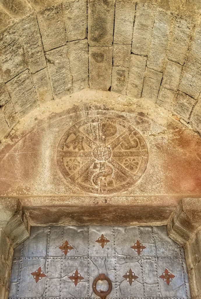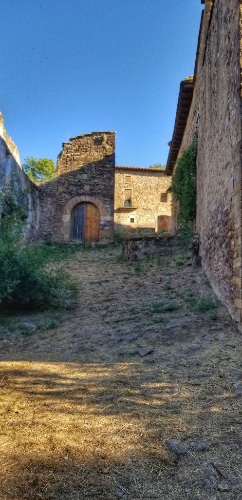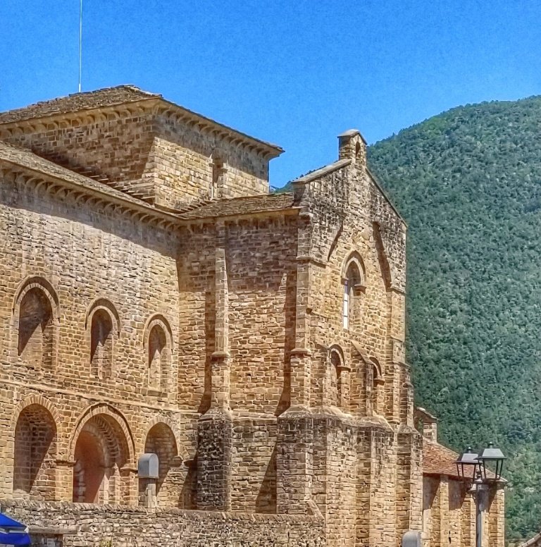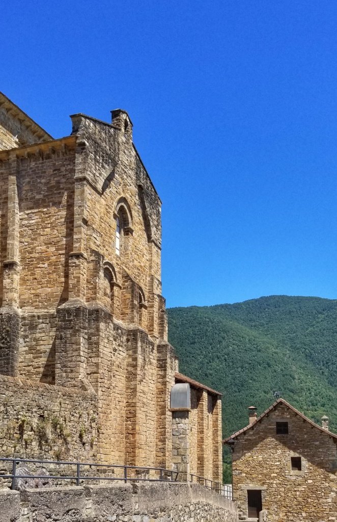 We left about an hour or two later and decided we should at least visit the Monasterio de San Pedro de Siresa that the village is famous for. Well! I’m so glad that we did! For starters the orginal Abbaye was on this site from as early as 833. However roman and pre-historic history also abounds in the region. In 852, the traveling monk and scholar Eulogius of Córdoba wrote about the splendor of the monastery and its library and that he had copied Greco-Roman manuscripts held there! We considered that. There was a fabulous library here in 852! We walked around the exterior of the building. There was a QR link to an english guide so we scanned it and listened to the history. What I learned was even more exciting for me! This village and the road and mountains around us had, until around 1000 years ago, been the most popular route for pilgrims crossing the pyrenees and heading to Santiago. They would cross the Puerto del Pato and head down the Hecho valley to Siresa and onwards perhaps even towards Binies and Berdun (our village which is already part of the Camino Aragones).