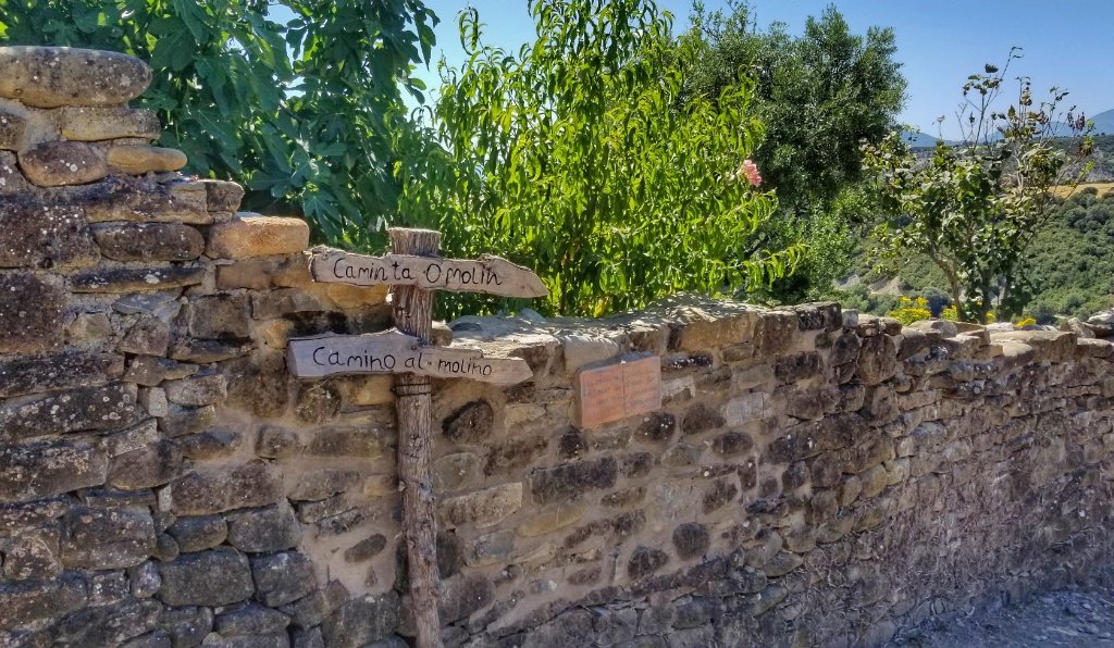 We ate breakfast and made ready. We were driving back to the Camino Aragones, and picking up the trail close to where we ended yesterday beside the Yesa Embalse (a huge and somewhat controversial reservoir). At first we drove along the major road of our valley and then we turned off onto a much newer road that ran along the Embalse but then the new road ended and a rather shabby old road took it’s place. Google maps was very confused and showed us heading off up a mountain… which gave us pause for thought and we wondered if the old road would just end too! But we needn’t have worried because as we turned the corner, we’d arrived at Ruesta.