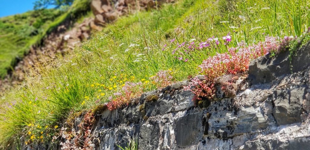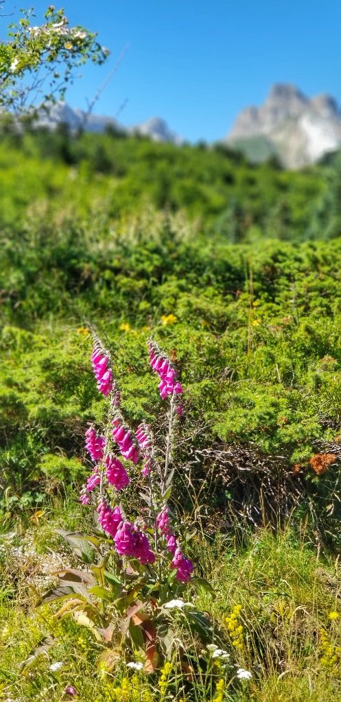 Down and down and I knew that Gerry was slowing . Downhill is harder for his foot so we slowed our pace. I stopped to take photos and admire the flowers and he slowly made his way down. Towards the end we kept thinking… the next bend will be the last… or the next… or the next… until finally we saw a flash of red amongst the trees and we knew that was our car. We’d walked over 14km and they were glorious.