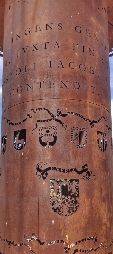We drove up the the Alto and admired the view and watched more pilgrims arrive and pose with the great iron figures. Gerry spotted a road sign the a cow on it… you see so many here as your travelling. He’s been saying that they always look sad and downhearted so today I took a photo and made gave the cow a smile… but now Gerry thinks he looks like Scooby Doo… there’s no pleasing some people!