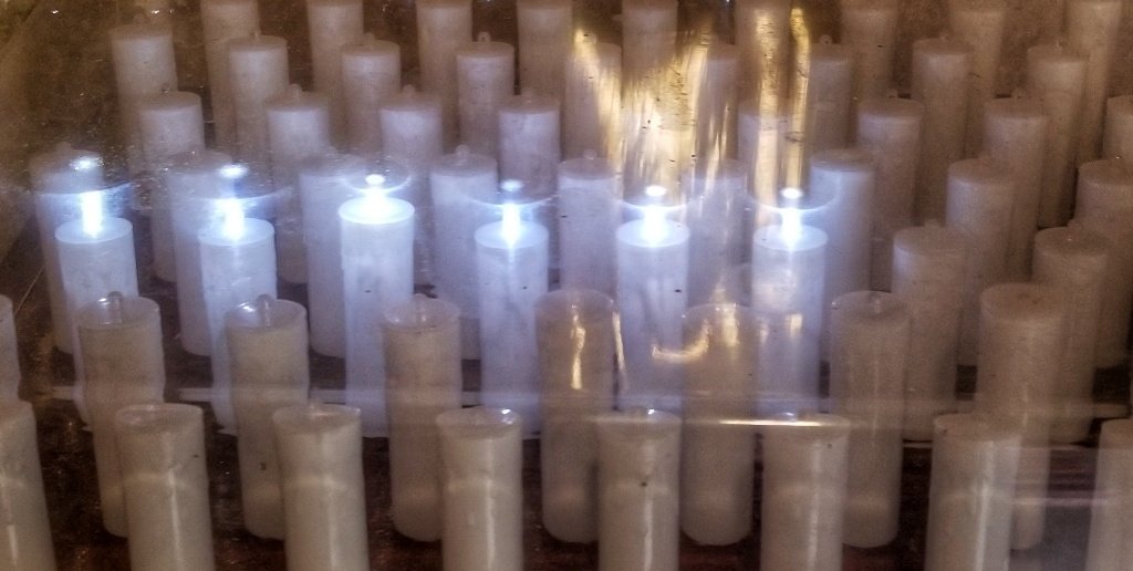 We lit a candle and sat in the cool and just felt happy to be here and when we were ready we left. We walked around the pillars that look like a cloister and we talked about Viv. My arms prickled with goose bumps and I thought back to a day on the Via de la Plata when Maggie told me about Thin places… where heaven and earth are so close that you can reach across the divide. I told Gerry and just as we wandered away a sprinkler started and he got soaked. We laughed so hard and he said… that was Mother… I can hear her laughing and saying I got you boy! We hugged and both swallowed our tears. We do miss her.