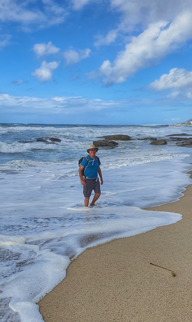 The waves were quite mighty with the wind and we had to choose our spot carefully. Gerry went first and shrieked when the cold water lapped around his feet. I went next and laughed… the water was far from cold. I would have swam if it had been calmer.