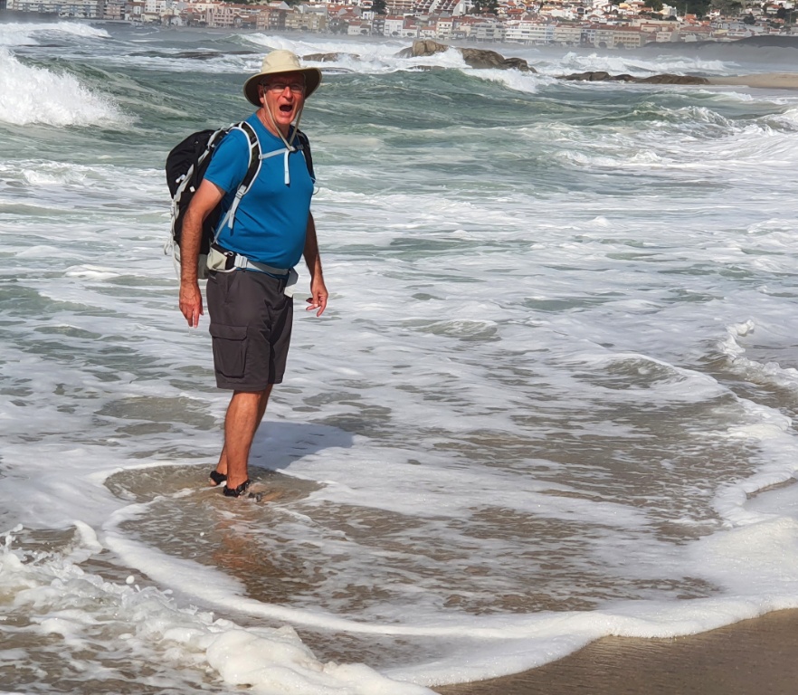 It’s a warm Sunday morning and the beach front promenade is clearly popular with the locals. Old couples walked along rubbing shoulders, young couples on bikes, joggers and dog walkers and even the occasional pilgrim all taking in the views. It was a good day to be walking.