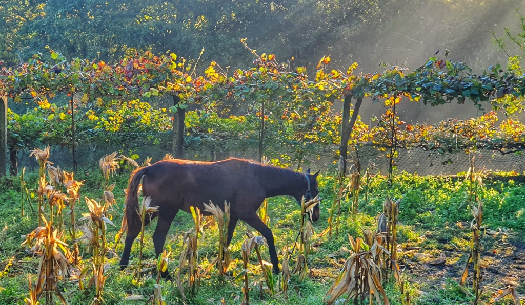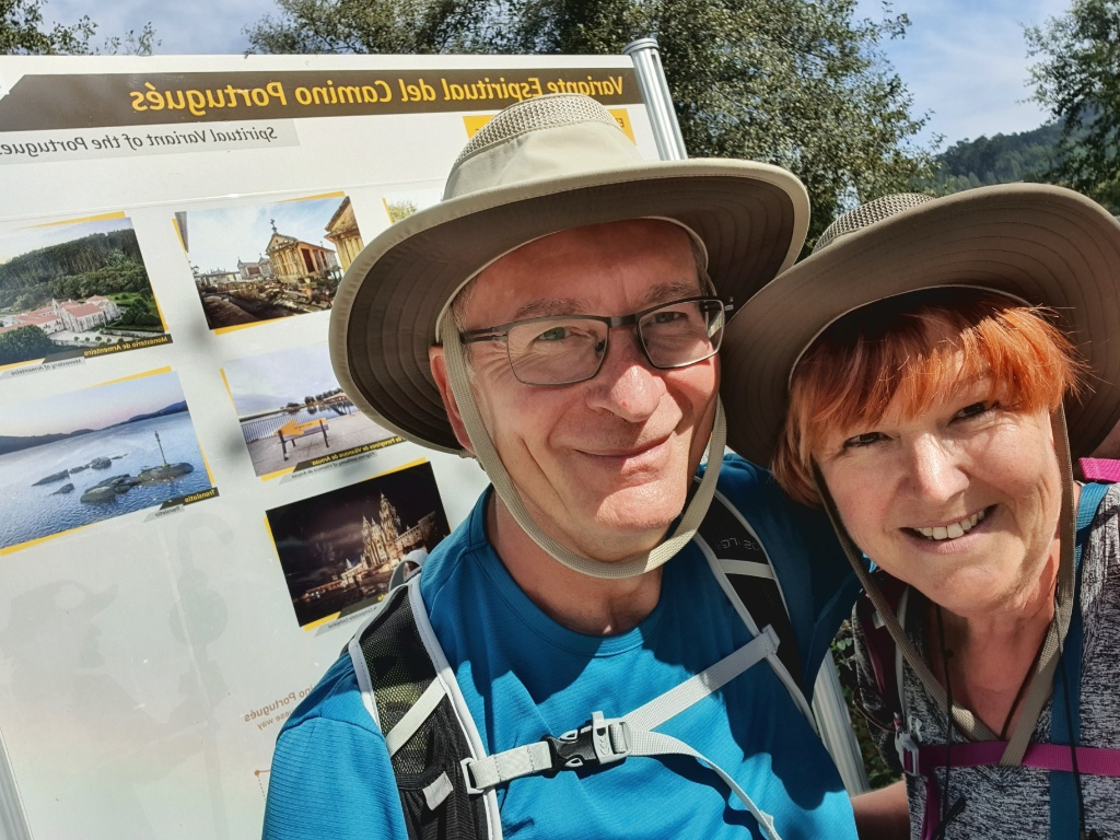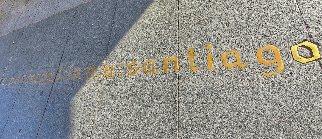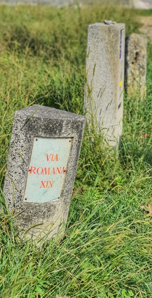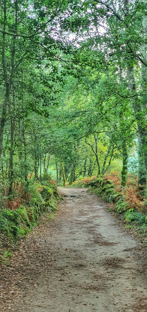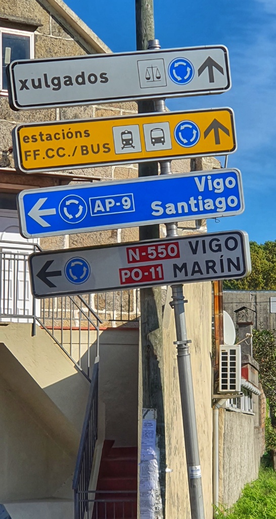 Onwards we headed, through the tiny narrow village streets and off into open countryside. I remember this walk from 2019. It had been glorious. The same apricot sky and cool morning air greeted me as I walked. Today autumn was far less advanced but Gerry took more pleasure in the stones under our feet. Since Ponte de Lima we’d seen reference to the Rua Hispanuca XIX… he’s been calling it the R19 for ages. Today we walked for many kilometers along the old stones and marvelled at the Roman engineering. We stopped for a break partway along and looked it up… it seems to have come up from Seville and Merida to Braga and was heading to Iria Flavia and Padron before diverting to Astorga. So many cities that I’ve walked through… so much history. But for us though we were heading to Pontevedra.