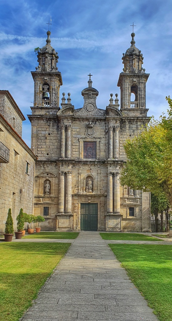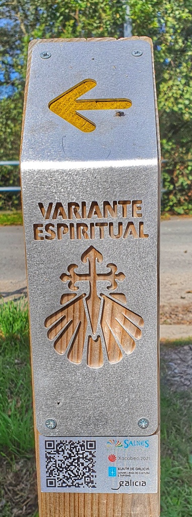 A few kilometres out of Pontevedra the road splits. You can continue on the Santiago or turn left and follow the Espiritual Variente. We turned left. Today we were heading to Combarro on the coast via the old monastery at Poio. It was time to leave the R19. The path wound up and up until it turned and went down again. And of course what goes down inevitably goes up… and so we did too. It was hot and as we entered Cabaleiro we were horrified at the closed bar… but then overjoyed to discover an open one a little further along… indeed there was also what appeared to be a very popular restaurant in town too. But we just enjoyed cold drinks before continuing.