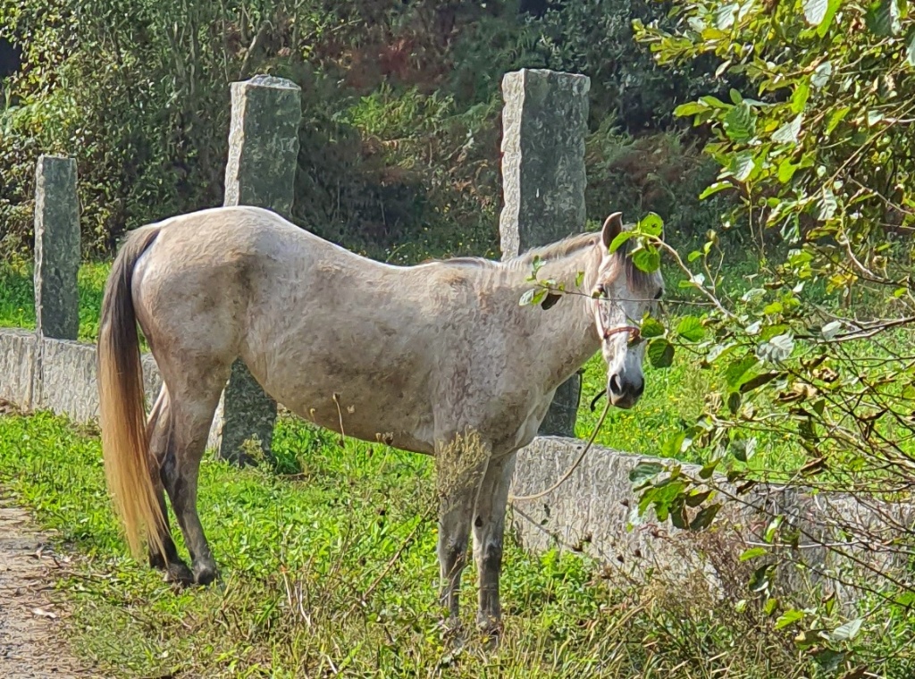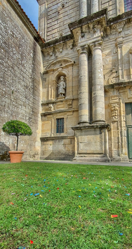 I’d really wanted to visit Poio monastery but alas it was closed… we arrived too late. It would reopen at 16.30 but we couldn’t wait… so perhaps another time I’ll get to visit here. For us we walked on. We could see the bay of Combarra ahead. The path took us slowly down into town. Since we left Ponte de Lima we’ve been following either a horse or a donkey… or to be more exact his poop. When we left the main route today we thought we’d never catch up with him but we were rather delighted to see his trade mark poops as we entered the town. We’ve called the beast Shinto… in honour of the Donkey in Tim Moore’s book. Gerry decided there could be a sequel book called Shinto Does The Portuguese but I’m not sure the title would work. Nonetheless there is a chance we could catch sight if the animal before we reached Santiago. We travel onwards in a few days on a boat.. my guess is that our pooper will travel on land… and so we might get ahead. We’re actually very happy at the prospect.