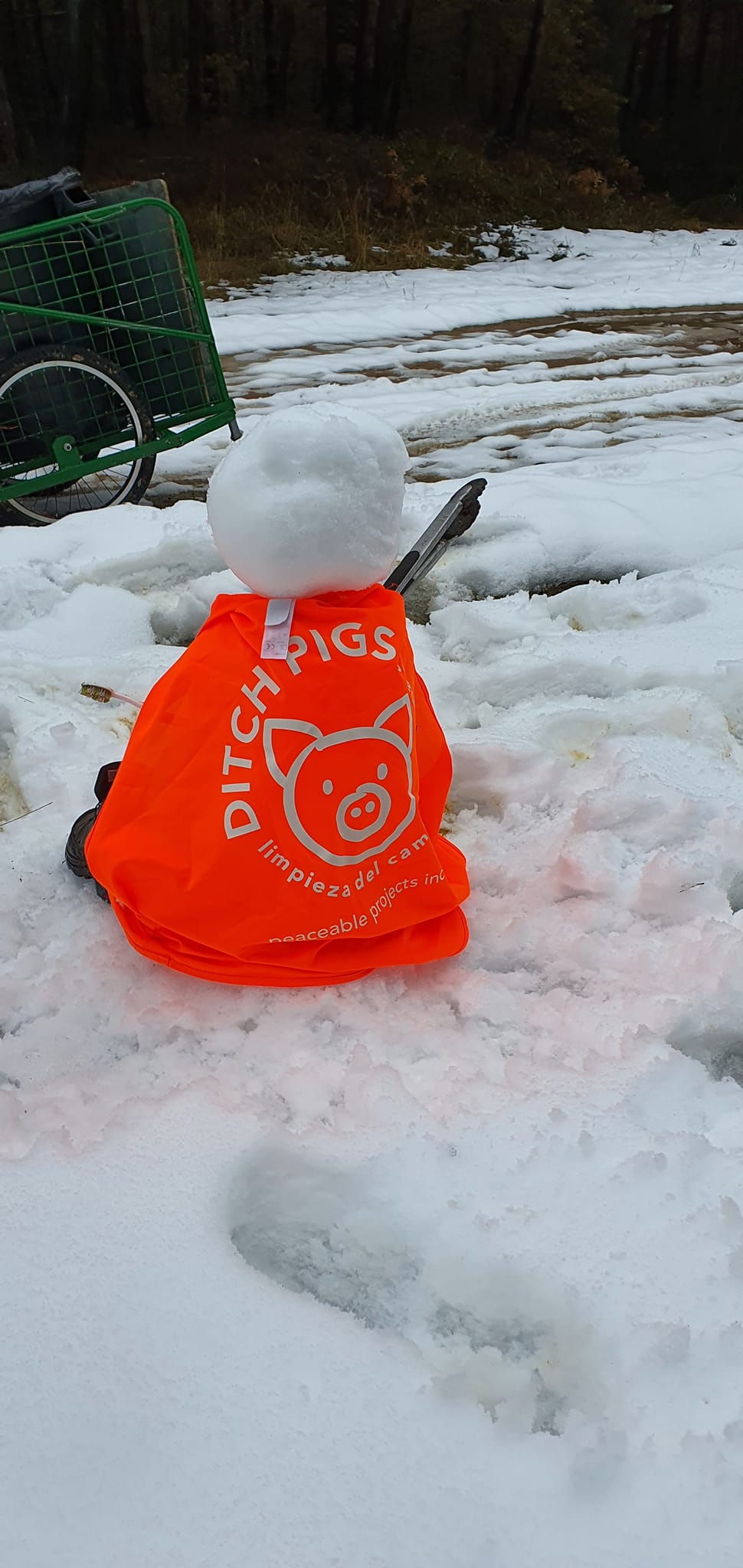 Day three saw us being dropped off at San Juan de Ortego and the other group starting at Villafranca Montes de Oca. I have to confess there was not so much litter picking today as the hills were snow covered and any litter was buried under the ice, but nonetheless we found lots and we also had time for a snowball fight and to make a little snowman… before we met our fellow ditchpigs in the middle of the stage. At one point we stopped to chat with a local, he took our photo and we ended up in the local paper!