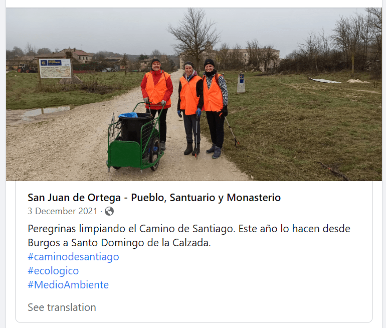 One such pilgrim is Rebekah. She’s amazing! She has dedicated so much to the Camino and I so admire her. One the group that she organises each year is called Ditch Pigs. She puts out a call for pilgrims to gather and collect litter. She arranges funds, accommodation, food and transport and then she co-ordinates everything on the ground when we arrive… and she also collects litter! And I should add that this is just one of the many many activities that she undertakes throughout the year! You can find out more on her website… and you can also make a donation! https://www.peaceableprojects.org/about