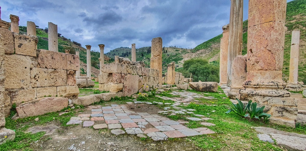 We arrived at Pella, an ancient city of great historical importance with evidence of 6000 years of continuous settlement. The ruins are spread out across a glorious setting just above the Jordan Valley.