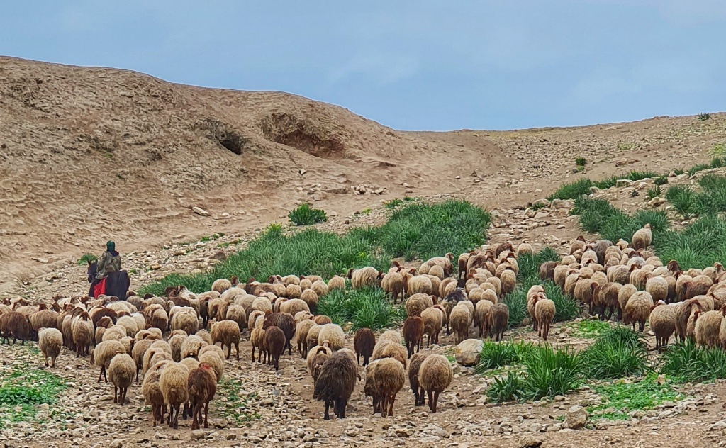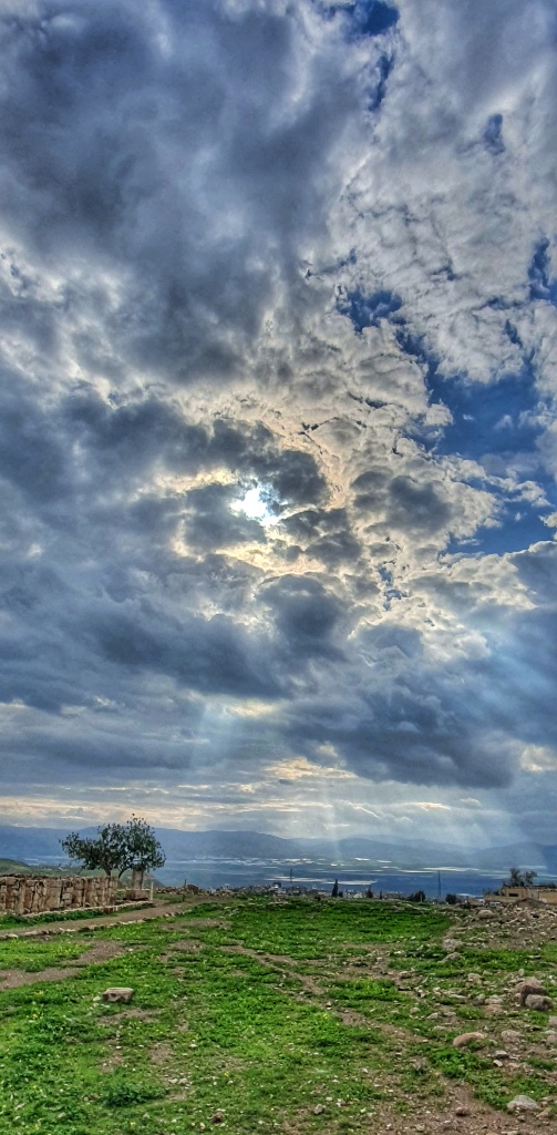 On the horizon there were dark clouds. It had been raining all morning in Amman but so far the heavens had been kind to us and we continued to make our way along Highway 65; the Jordan Valley Highway. The more Gerry drove the more he relaxed into the Jordanian way of driving, watching out for the crazy speedbumps that just appear out of nowhere and the potholes that are laid out like an obstacle course. Added to this array of obstacles, very young children played on the road side and young men meandered along behind flocks of sheep and the odd herd of cows and cars drove three abreast.