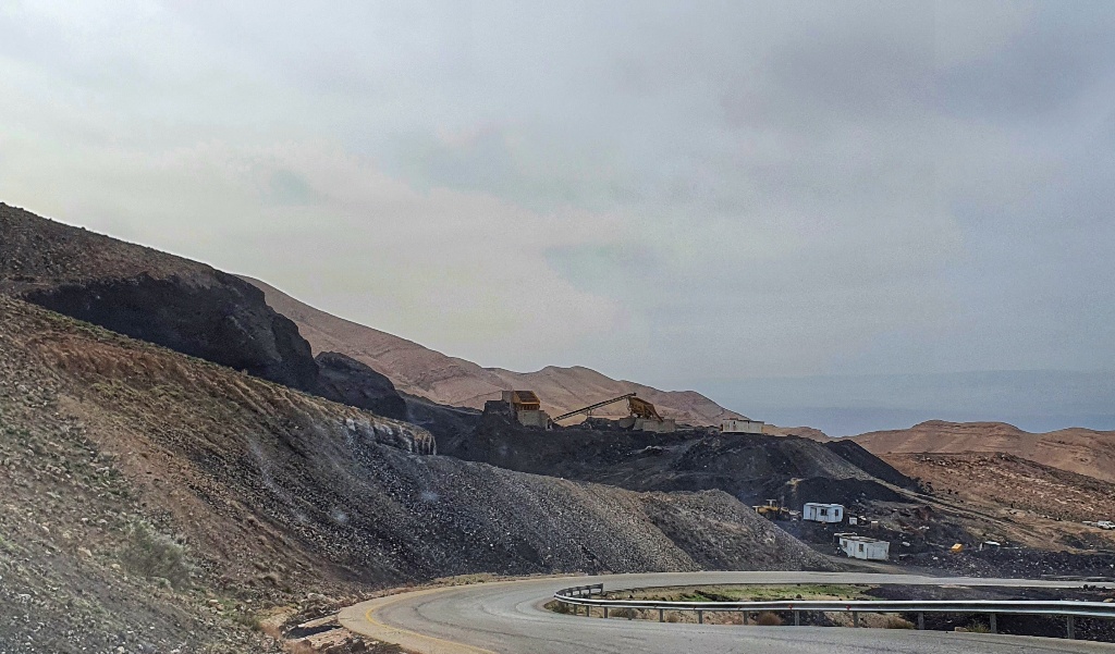 We wandered around for a little to take in the views, listening to the really loud brays of Bedouin donkeys in the valley below and trying to make out constructions on the hill opposite us. Once we’d explored all that we could, we put our hotel in the satnav for our drive back. And what a drive it was! The first half of the journey was along a single track road through a Martian like landscape of dry stoney red hills. Half way along we turned off to a second road and the landscape changed to hills of dark brown and black, revealing a prehistoric volcanic landscapes. It was an interesting drive with the road more of a track than a road and we were forever thankful that nothing came along in the other direction!
