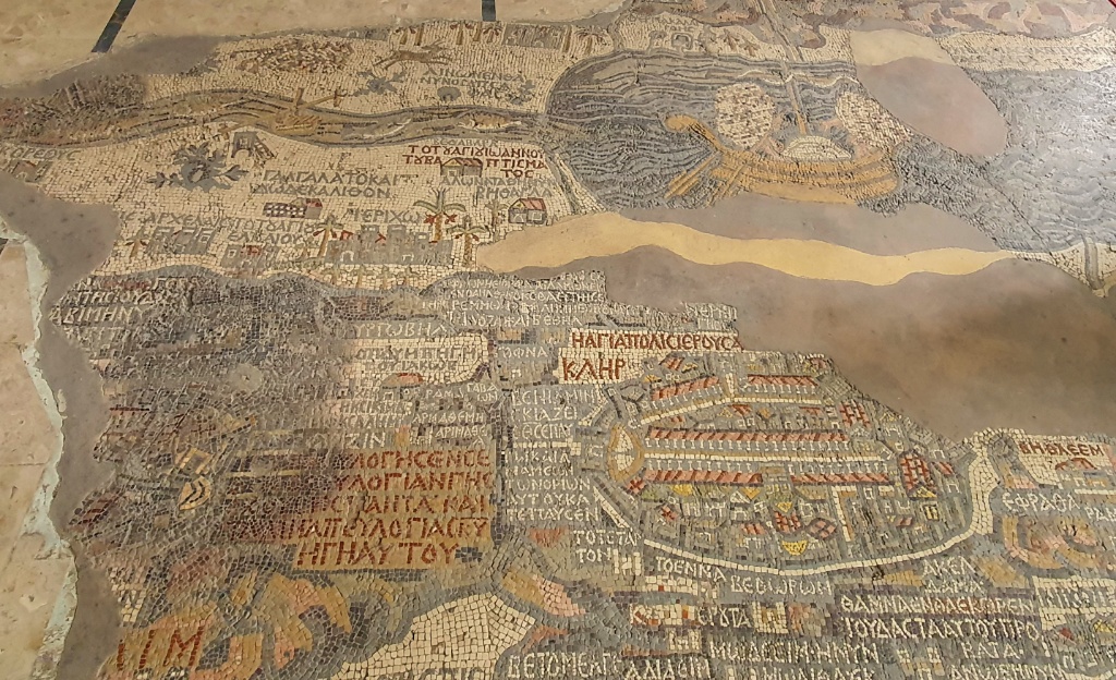 Madaba has one of Jordan’s largest Christian communities. The town’s long tradition of religious tolerance is joyfully ( and loudly ) expressed on Fridays, when imams summon the faithful to prayer and bells bid Orthodox Christians to rise. Sadly we never got to hear this but we did walk around all 7 of the suggested museums. At one we were amazed by the collection of photos taken in 1905 which showed almost nothing here, no town and just bare hills and pasture and certainly nothing of its 4500 years of of occupation and prosperity.