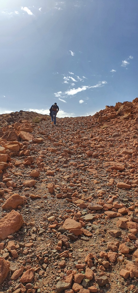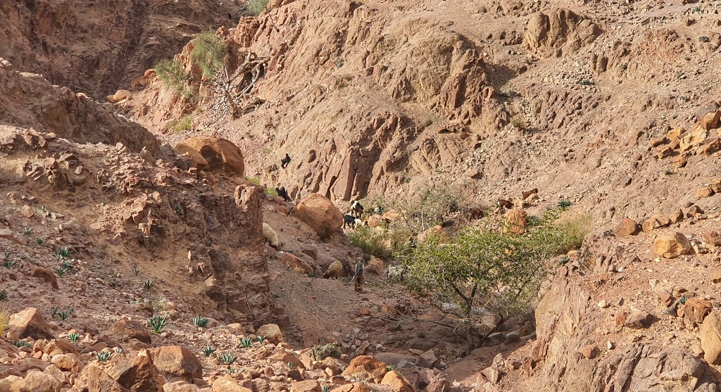 After our tea it was time to pick our way back down the mountains. For the most part the trail was covered in scree. Its loose and it moves as you walk. The Bedouins walk along as if walking on smooth flat sand but me and his nibs slowly made our way along behind and not for the first time on this trip I wished I had a pair of hiking poles!