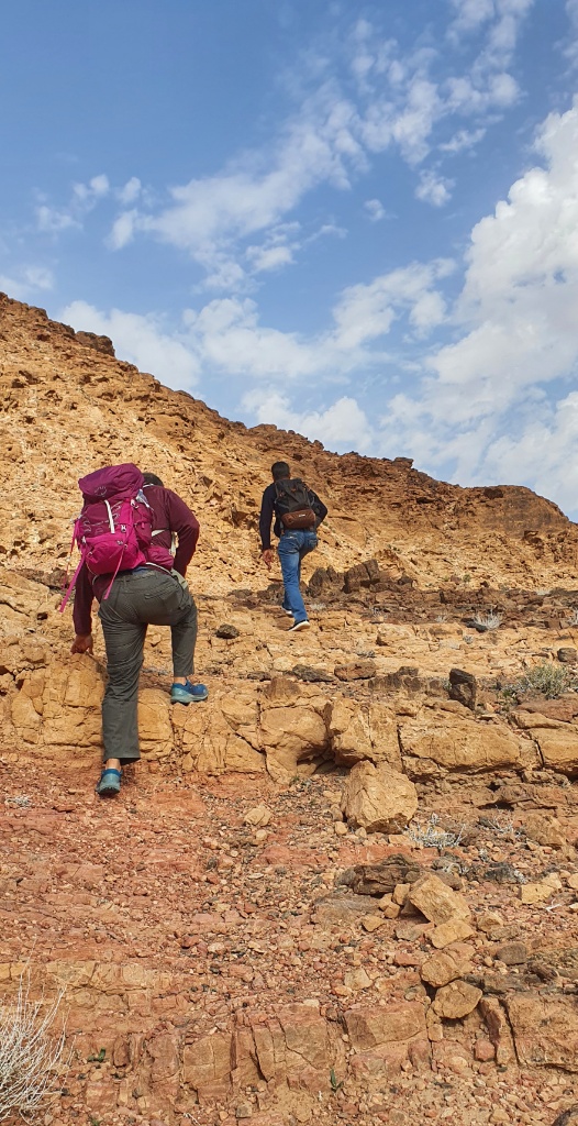 Our walk yesterday from the Dana Biosphere Reserve and to Feynan Lodge forms part of the Rift Valley Trail. The mountains were formed when African plates and Arabian plates collided. Originally we had wanted to walk this entire section from Dana to Little Petra through the Shobak Heights but rescheduling because of COVID made it impossible for us this time (but maybe one day!) The section that we hiked yesterday was truly breath-taking and the photos just don’t do it justice and the vastness of the landscape dwarfed us and we felt so lost amongst the hills.