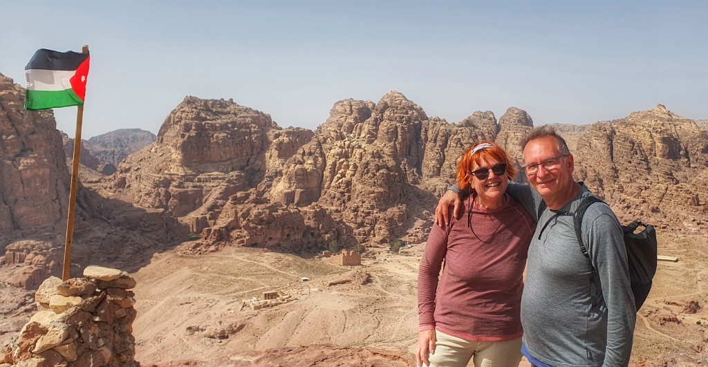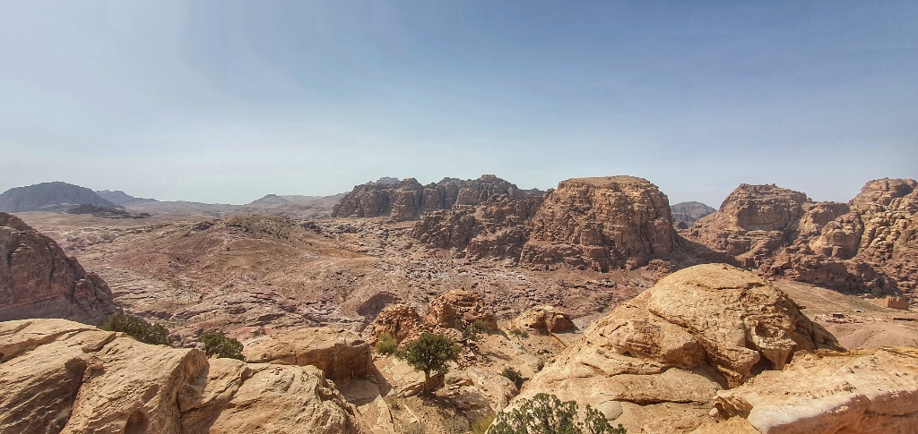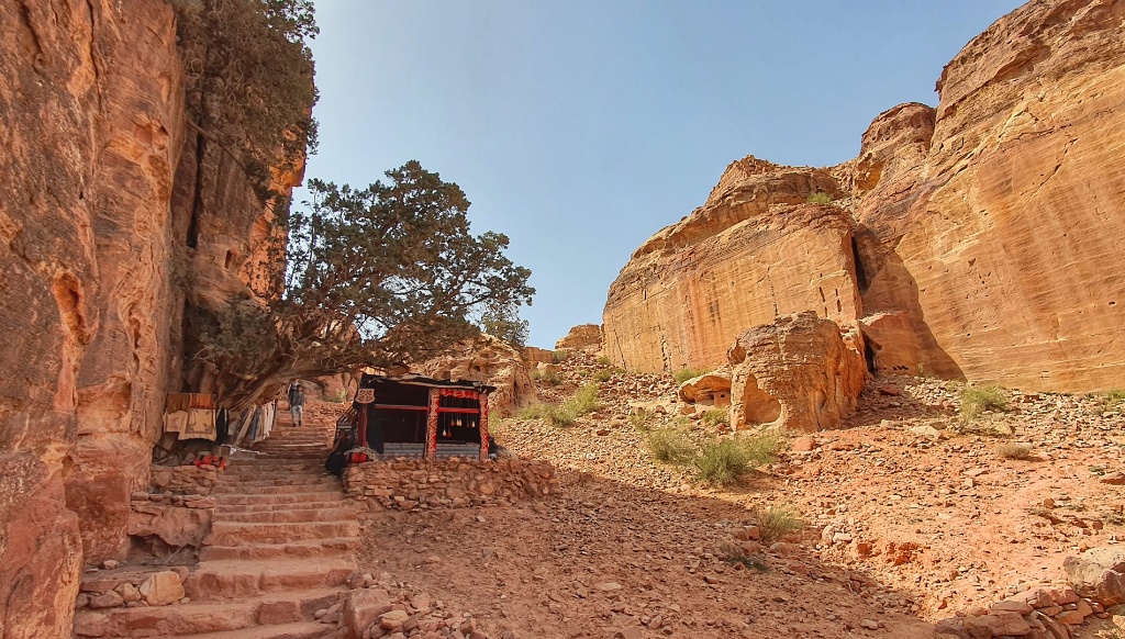 We found the spot where animals had been sacrificed, shown where the blood moved down in channels carved in stone and then we walked on a little further to look across at Aaron’s (the brother of Moses) Tomb on the mountain opposite. Below us, like more ants, we could see today’s tourists walking where we walked yesterday. We could see the Royal Tombs and the Monastery in the distance. And once we’d looked enough we knew it was time to go down.