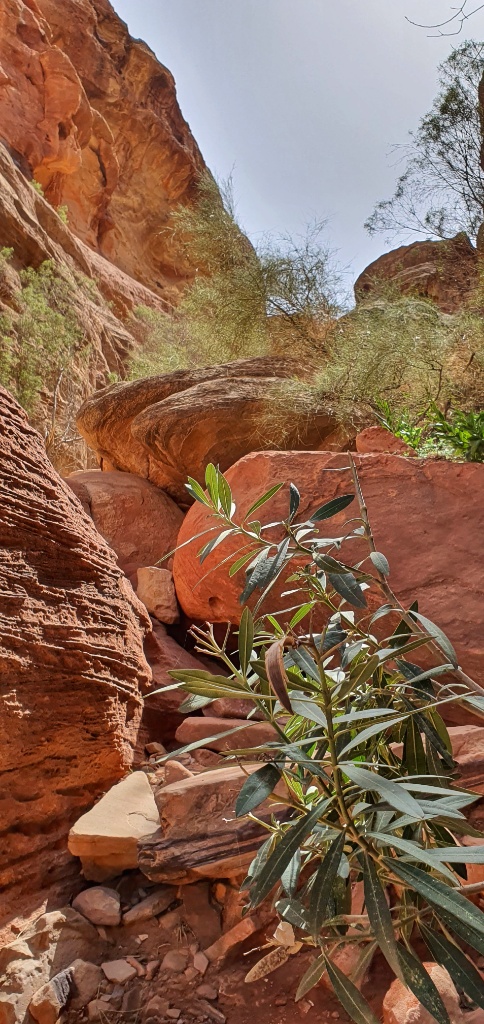 I’d downloaded a wikiloc map of the trail we wanted to follow so that we could determine where the start was and also ensure we stayed on the right path. We met a young guy going the same way and we started talking and walking together. As we walked off the main Siq trail several of the Bedouin ran after us saying we must have a guide and that it was too dangerous alone but we’d been told it was easy and we’d been assured we did not need a guide… so there were more no thank yous.