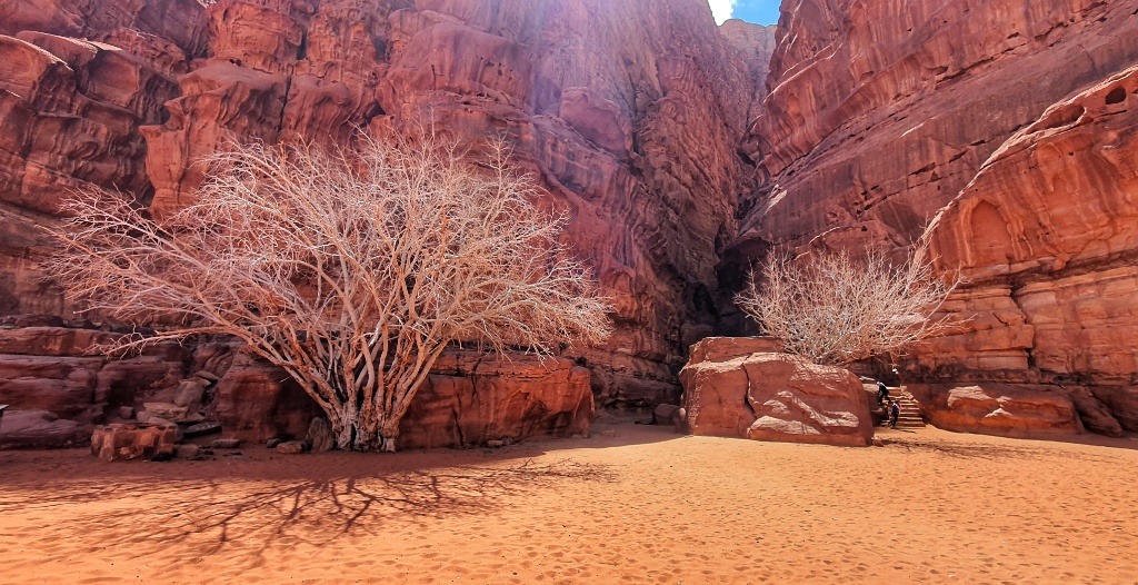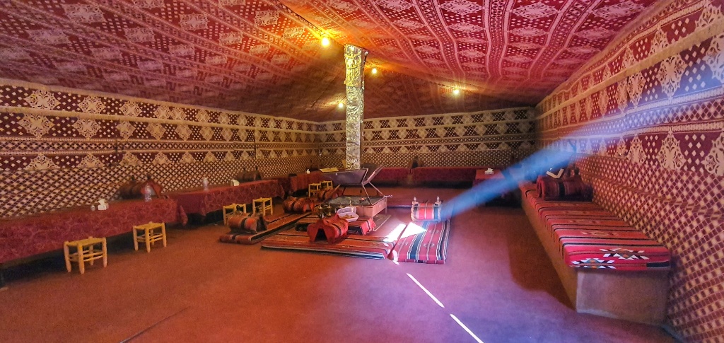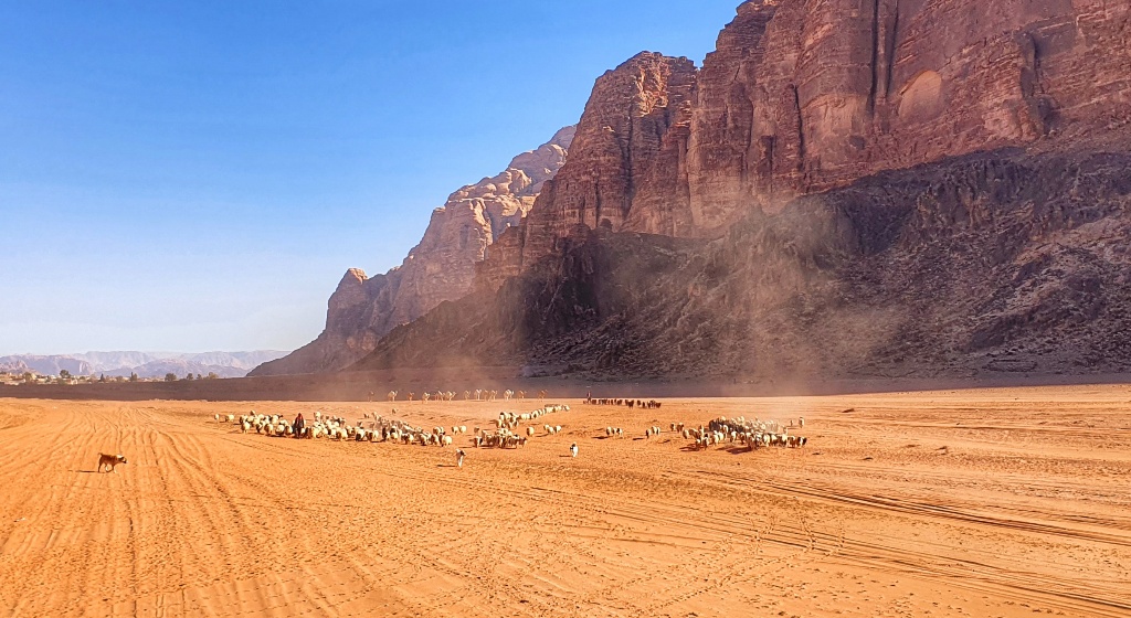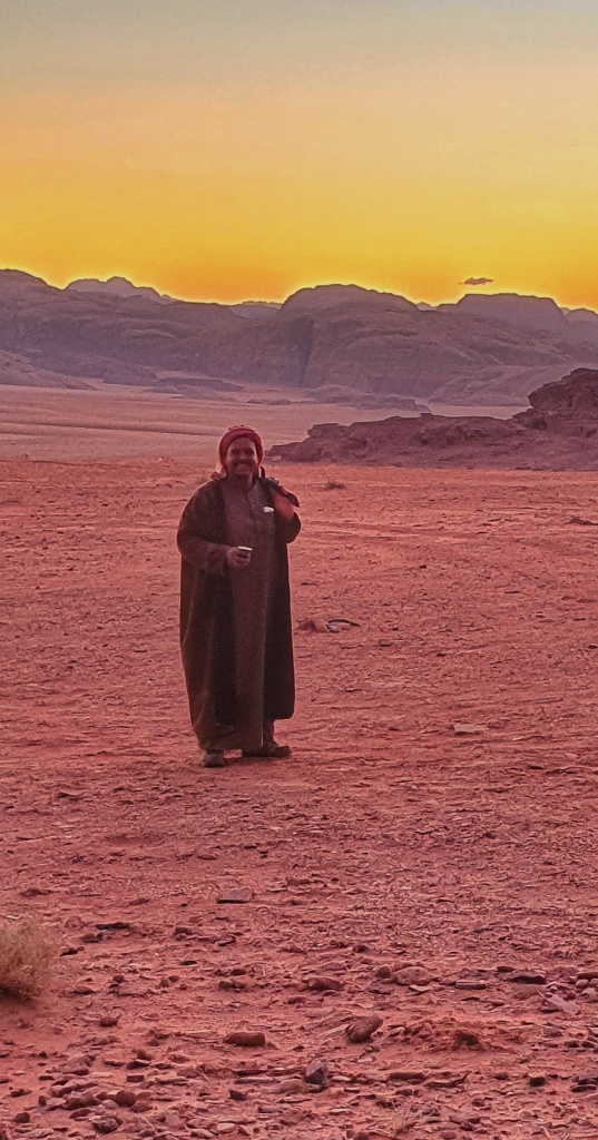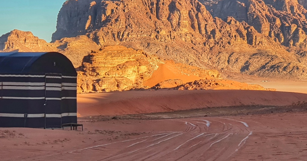 Bedouin tribes still live among the mountains of Rum and their large goat-hair tents are a feature of the landscape. The Bedouins of Wadi Rum gained notoriety in 1917 when they joined the Arab revolt under the leadership of king Faisal and fought alongside Lawrence of Arabia against the occupying Turkish and German armies. We’d get to climb to Lawrence Spring later and visit his home, albeit the building was actually built by the Nabataeans first.