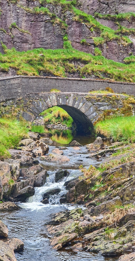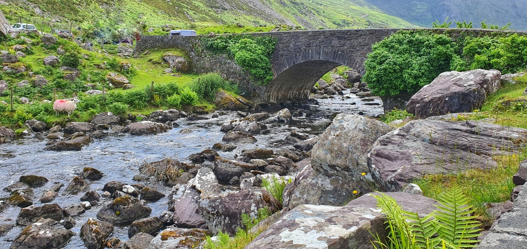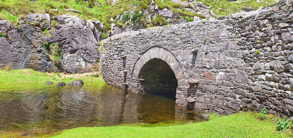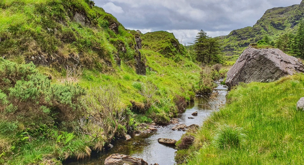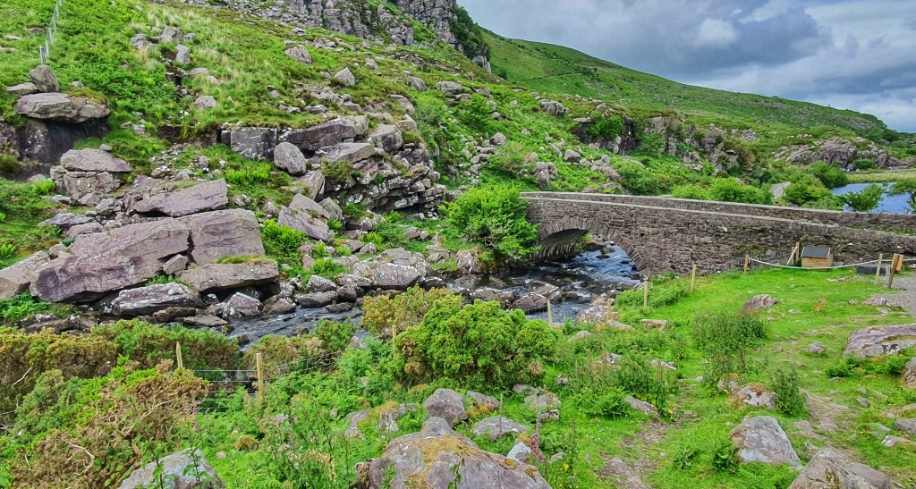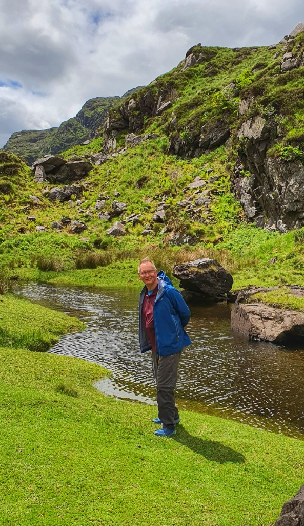 The route starts at Kate Kearney’s Cottage in the north and ends at Lord Brandon’s Cottage in the Black Valley. The Gap was formed 25,000 years ago during Ireland’s last ice age as a result of a “glacial breach” where a glacier in the Black Valley, estimated to be over 500 metres deep!! broke through the Head of the Gap and moved northwards carving out the U-shaped valley that we see today. It reminded us a great deal of our walk up and through the Somport Pass in the Pyrenees; certainly the French side.