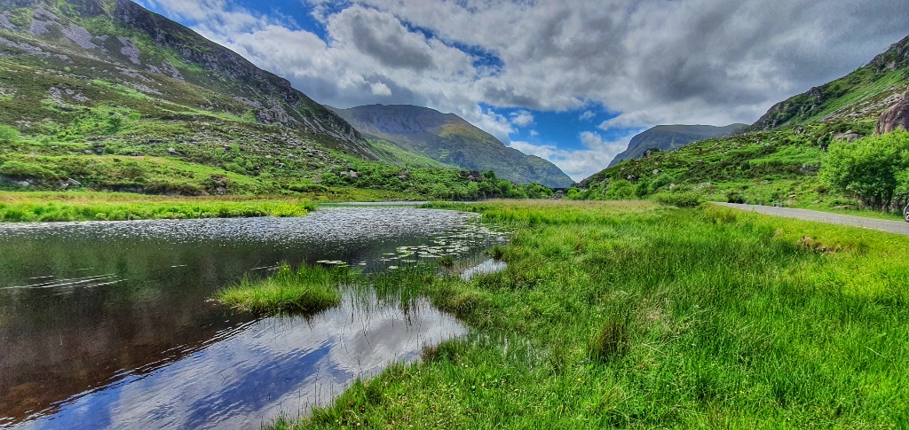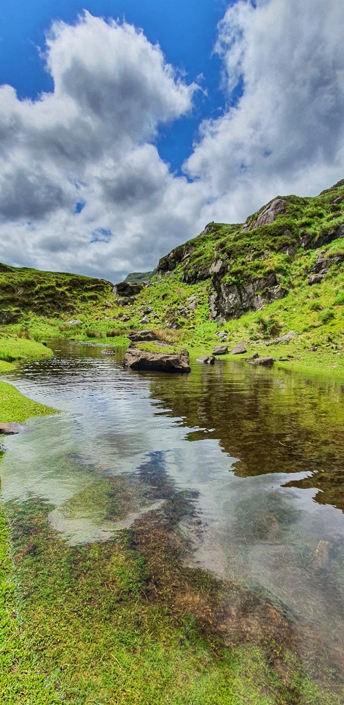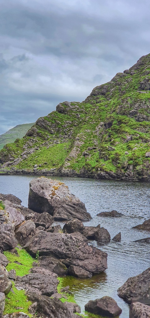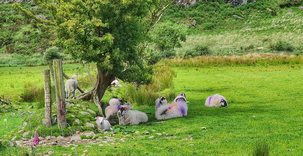 We stopped a couple of times for a cup of hot tea and a hard boiled egg. Gerry searched for fish in the lakes and streams and I took photos of sheep and foxgloves and reflections on the water. It was glorious. The weather man had said rain today but we never felt a drop. If you’re ever in County Kerry we would thoroughly recommend this glorious little trail. Maybe one day we’ll come back and walk the loop, I can imagine it’s quite spectacular!
