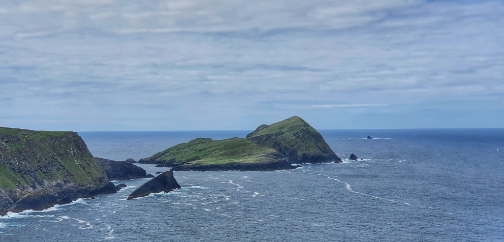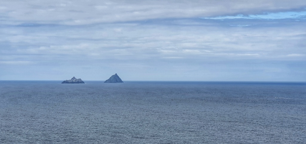 It was a glorious morning, as always the wind was blowing, but the sky was blue-ish and the sun shone and all the while, as we walked, Skellig Micheal gleamed back in a calm sea. We would definitely have been able to land today if the rockslide hadn’t closed the island.